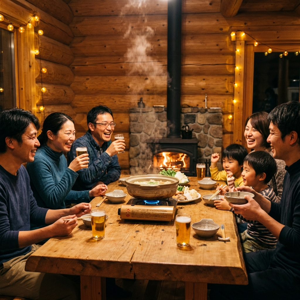 一棟貸しだから気兼ねなく。地元の食材で鍋パーティー。